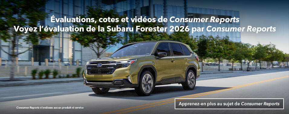 Voyez l’évaluation de la Subaru Forester 2026 par Consumer Reports